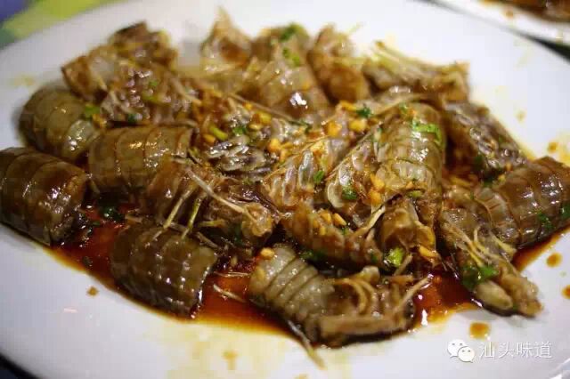 潮汕人用鱼露、芫(yuan)荽(sui)、蒜头等香料,浸腌而成的,这样吃虾姑,肉质幼滑,鲜嫩,这时候配上一碗潮汕白粥,绝对可以连吃3碗。