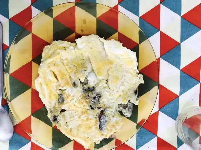 手残的我烙了一个蚝仔煎,做法和三文鱼蛋饼差不多~我尽力了==相信小读者们应该能做出卖相更好的蚝仔煎~~~欢迎投稿!