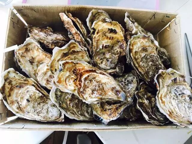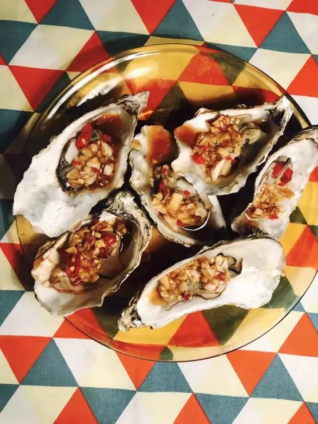 一个木盒装着24个生蚝,不用担心生蚝宝宝不回家,生蚝爸爸妈妈会担心,它们一家应该都在木盒子里,一家人最重要的就是齐齐整整。没有蚝刀的我为了吃也是很拼,愣是用餐刀撬开了。此处写一个小tips:选一把结实的餐刀,对着生蚝的尖头,使劲一堆,然后利用杠杆原理撬开。虽然不如蚝刀来的快准狠,但也不失为一种好方法。那接下来我们就一起看看一天的生蚝菜单吧~