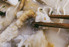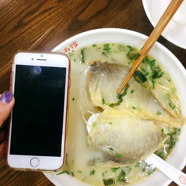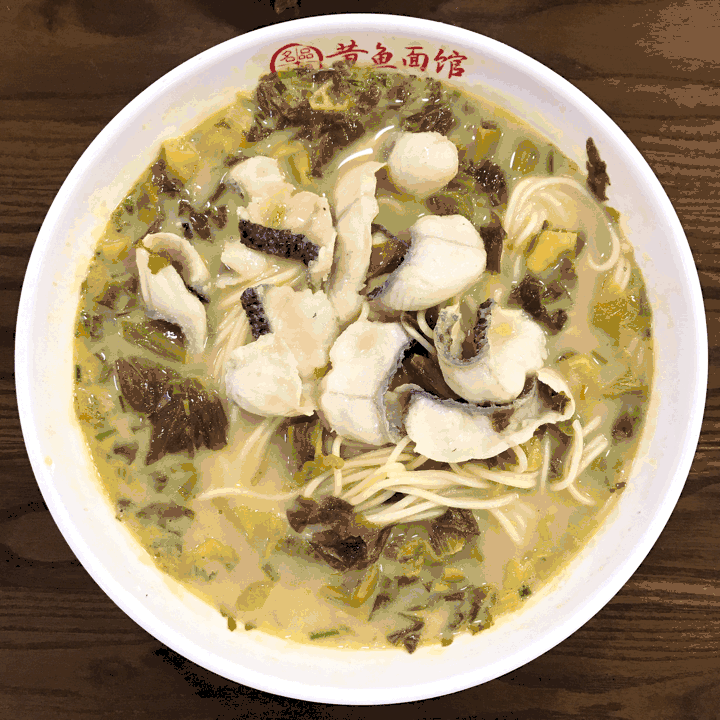 酸酸辣辣的浓汤配合劲道的鸡蛋面和鲜美黑鱼片,真的很爽啊!