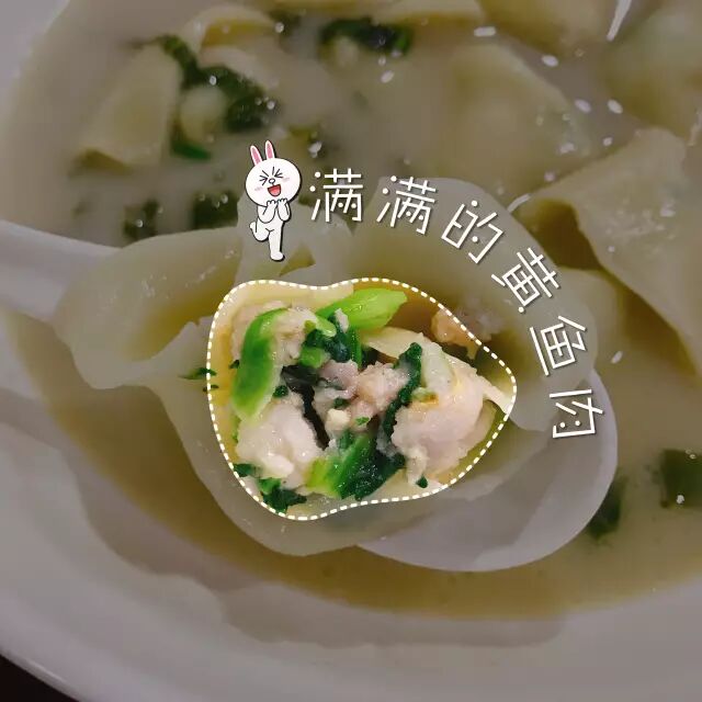 想象着慢火熬出来的鲜汤,再想象着馄饨馅里的鱼肉!!!咬一口还会有汤汁流出来~虽然馄饨皮儿有些厚,但依旧挡不住它的鲜美~