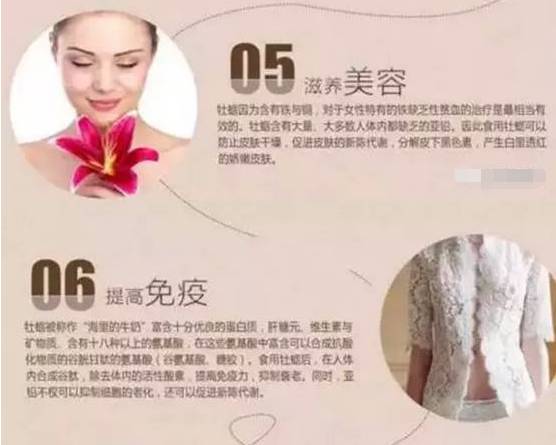 因为吃了,你会发现你再也记不起任何化妆品的品牌了,牡蛎中含有多种维生素、氨基酸和多种抗氧化物质,养颜美容,根本不用买化妆品!