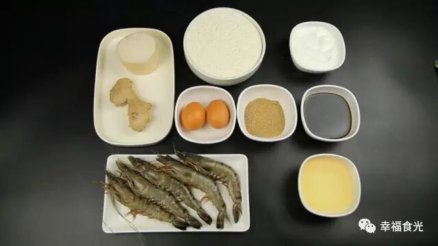 大虾5只 苏子叶1片 天妇罗汁 低筋面粉 淀粉 芝麻油 色拉油 鸡蛋 味淋 浓口酱油 木鱼素 姜泥 白萝卜泥
