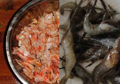 首先先将打捞回来的河虾清洗干净煮熟,然后将虾肉和虾壳分离后,把虾壳沥干水分后直接扔到阳光下暴晒,待确定全部晒成干后,装入盆中;
