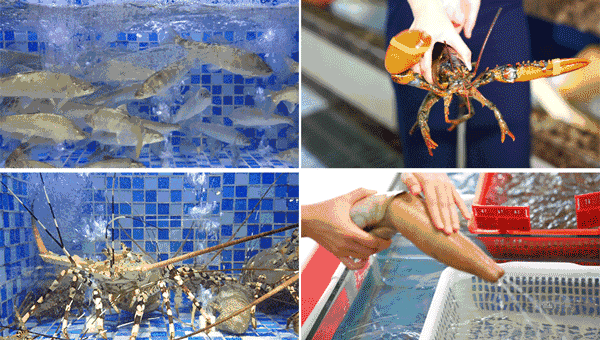 在这里,让人印象最最深刻的就是这些专人照顾的海鲜池,全是鲜活又生猛的海产。