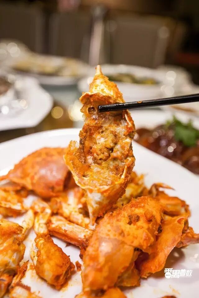 随手夹起一个蟹壳——沾满了咸香的蛋黄,舌尖轻轻一舔,粉粉的、很鲜甜!夹起一块蟹腿往嘴里送,更惊喜地发现蟹壳也能吃!超香脆!