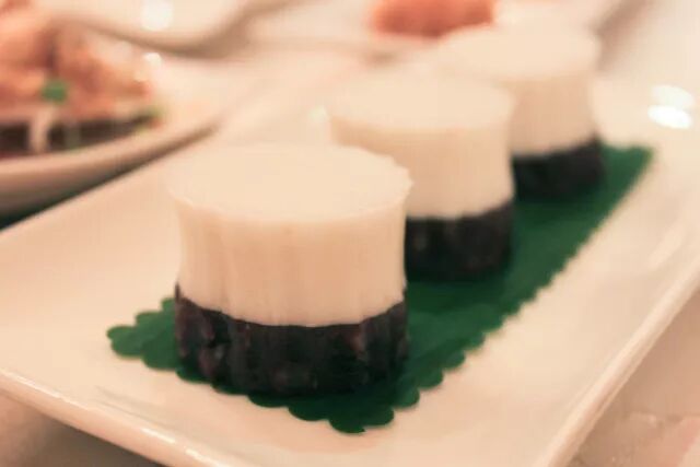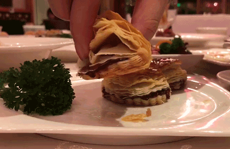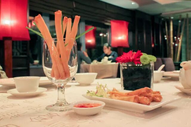 「鲜虾春卷」可是泛太海天楼的招牌菜之一,但是此春卷非彼春卷,被看看细细长长一根可是内有深意,掰开来看,瞧!春卷里包裹的可满满都是虾仁打制的虾胶。