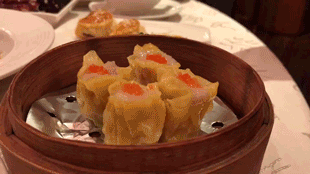 Q而韧的皮,带着淡淡蛋香,干蒸烧麦里裹了虾肉、猪肉等东西,经过厨师的巧手被捏成了石榴花的形状。蒸熟后入口劲道十足,汁水包裹着内陷,鲜香不腻!