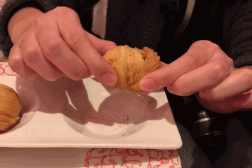 榴莲酥烤制的恰到好处,一口咬下去真的是酥到心里。纯纯的新鲜榴莲果肉做成的馅心,搭配层次分明异常的千层酥皮,轻轻咬开外层薄薄的壳,顿时感受到了浓郁的果香在舌尖泛起~