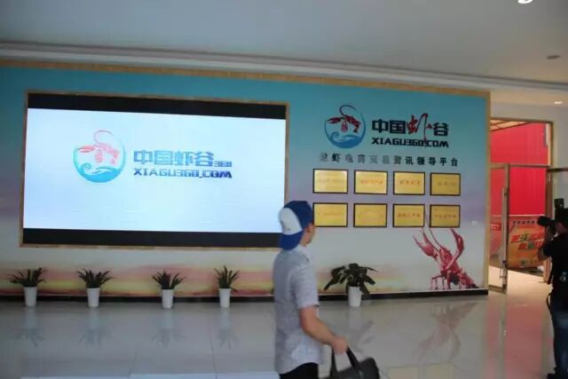 “龙虾中国行”与新宏集团舒总、易总,新宏集团打造了6万亩养殖基地,养殖的小龙虾体格硕大,在会场受到广泛围观。