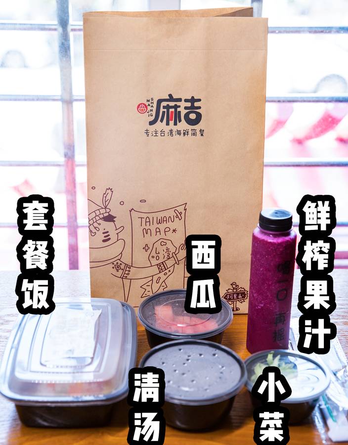 贴心的麻吉哥还准备了外卖,每一份外卖都会送一份当季的水果,包装严密,不用担心会洒出来。