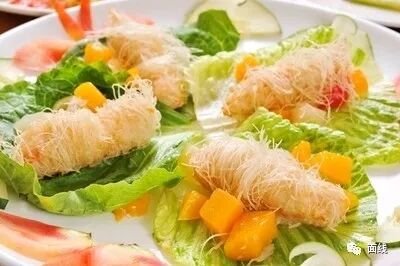 这道美食就是面线虾,刚出炉的面线虾全身金黄,因为刚刚煎炸过,所以香气扑鼻,细细的面线圈圈环绕显得非常有质感,咬一口皮衣香香脆脆,里面的虾肉又软又嫩,吃上几只后满足的幸福感都要爆棚了。