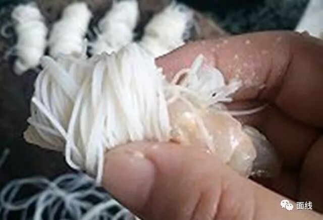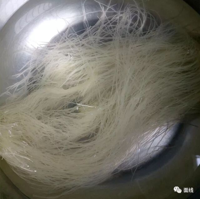 3、处理面线,把细面线放入开水中泡软,稍微泡一会就可以了。