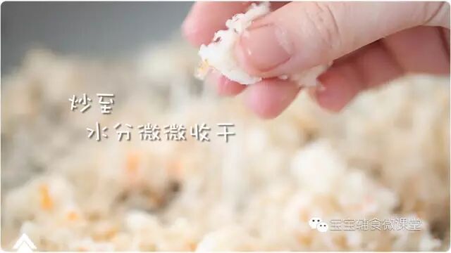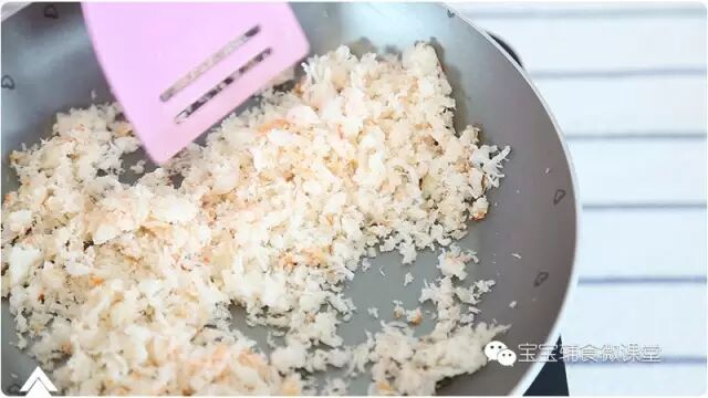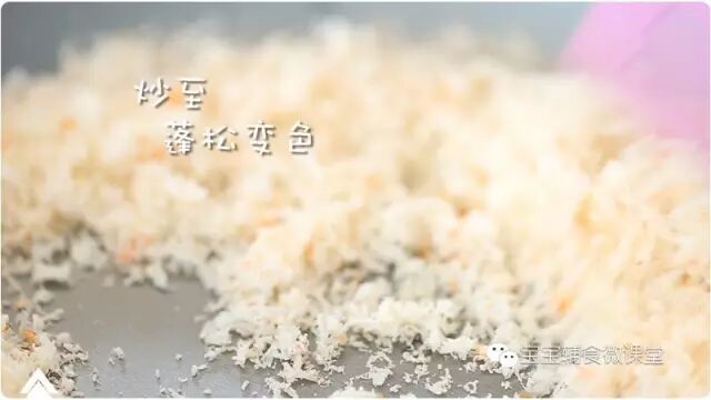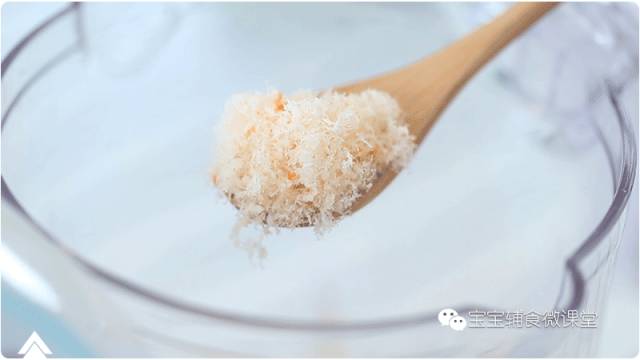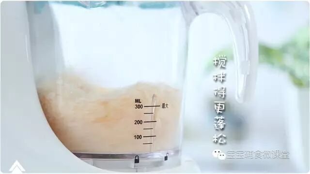 »这里肯定会有很多妈妈问了,为什么不早点用辅食机呢?是这样的,如果一早就用机器搅拌,会因为有水分而搅拌成絮块状,这样就不会蓬松了,口感很差。只要经过了两次翻炒,再用来搅拌,做出来的性状会特别蓬松。