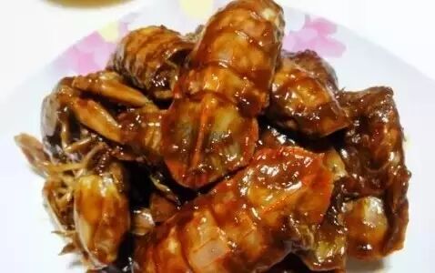 3、不断翻炒,等爬虾颜色变红,加入一大勺的甜酱继续翻炒,直到爬虾完全熟透即可。