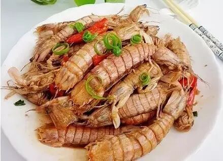1、将虾爬子用清水冲洗干净,将两侧及尾部的硬壳剪掉,虾头去掉,中间一分为二备用