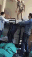 2、锅里放2大勺油,油热后,将辣椒和葱姜蒜放入锅中爆香,然后倒入爬虾翻炒,加入一小勺的料酒、一小勺的盐