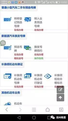 近日,河南交通安全综合服务管理平台再次升级(以下简称:互联网平台,网址:http://ha.122.gov.cn/)。新增“二手车转移登记预选号牌”(转移是指郑州本地购买的二手机动车)和“二手车转入预选号牌”(转入是指异地购买需要在郑州上牌的二手机动车)。