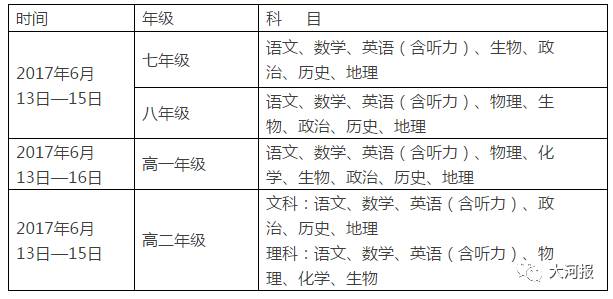 郑州市初中、高中非毕业年级的期末考试时间表也已经出炉!