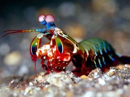 而皮皮虾拥有16种视椎细胞,意味着它感知的色彩远远超过我们的想象。