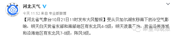 ②秦皇岛人挺住!雾霾黄色预警+10℃降温+大风预警…蓝瘦香菇