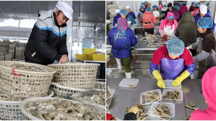 加工厂负责人哈强介绍,皮皮虾井喷式丰收已经好多年没有过了,趁着“白菜价”得赶快抢收加工冷藏,过了这个村可就没这个店了。