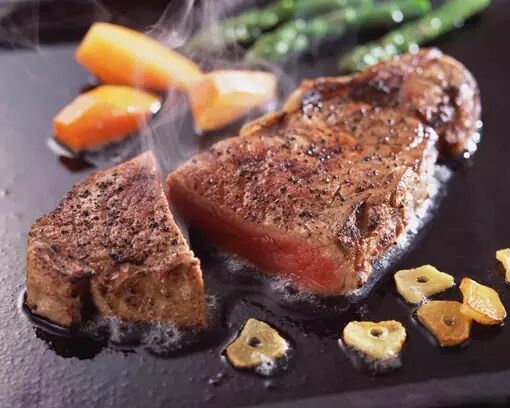 为什么叫雪花牛肉呢?指脂肪沉淀到肌肉纤维之间,形成明显的红、白相间。撒少许盐、胡椒粉腌制十分钟,牛油烧热放入牛排,慢火香煎至八成熟,美味爽口!