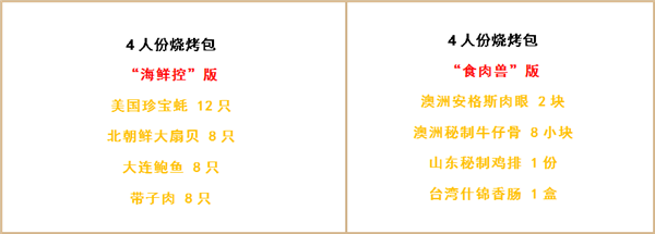 强大海鲜阵容烧烤包,任你随意组合搭配!