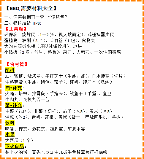 附上:BBQ需要材料大全↓↓↓