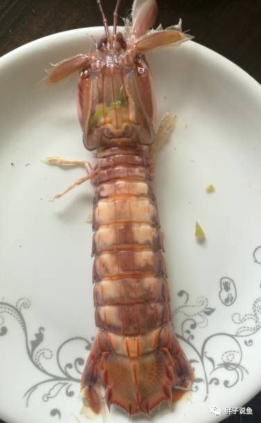 那虾蛄的钳子有多大呢?你看一下下面图片的比例就晓得了。细心的同学可以参照盘子的口径。