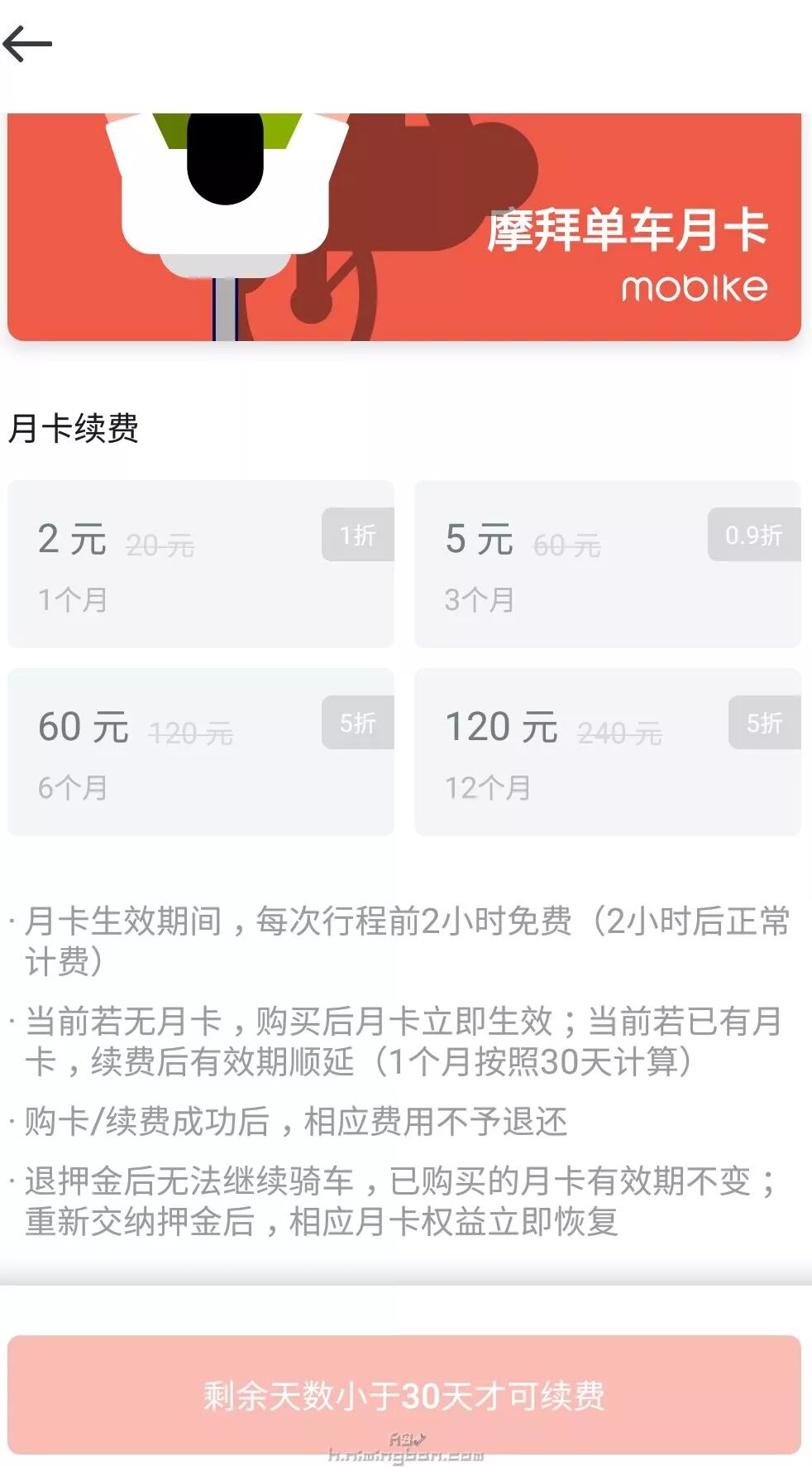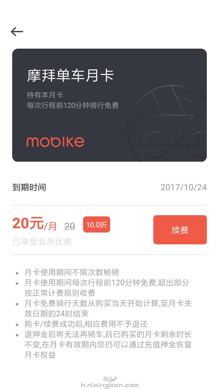 摩拜月卡:20元