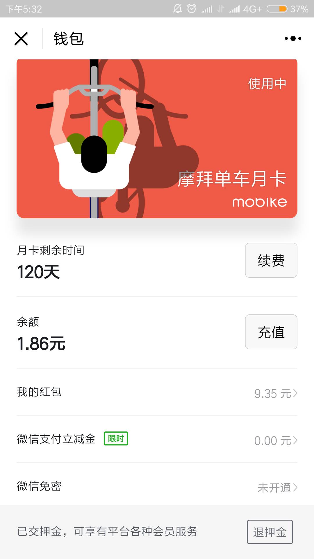 摩拜不是三个月5块吗