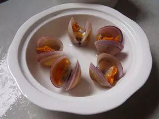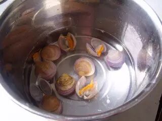 1、蛤蜊用淡盐水泡一夜,盖上一个盘子晃动十几下。若是怕不干净,可以放点白酒后晃动。烧开水,放入蛤蜊,开口一个捞一个,直到全部开口。