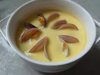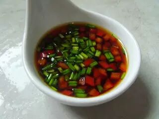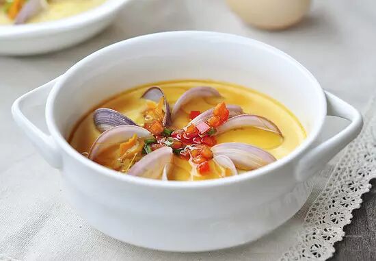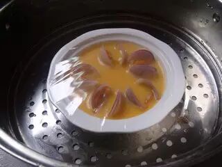 6、蒸好的蛋羹吃的时候淋上步骤5中的料汁即可。