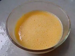 2、鸡蛋充分打散,兑入等量的纯净水(温开水也可以,至于比例看自己喜好,我觉得一比一比较香,多点水就比较嫩。),加入盐充分搅拌均匀。这是蛋羹滑嫩的基础。