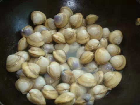 2、放洗净的花蛤,适量的盐,煮至花蛤都开了