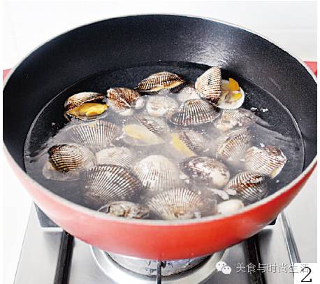 2.水烧开,放入蛤蜊煮2~3分钟至开口,捞出。