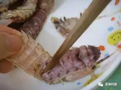 1.把尾部最外面两个小脚拧断,然后捏着尾部轻轻往上一折,再扭掉。