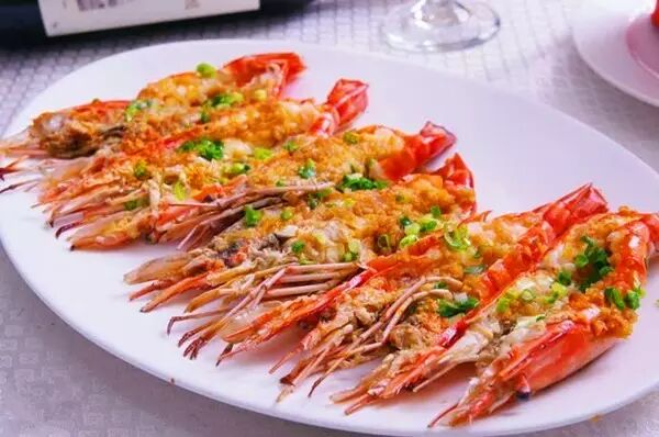 4、将调好的汁加上少许红椒粒倒在虾表面上,摆盘,锅烧开水蒸两分钟,出锅撒香葱即可。