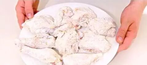 裹好面粉的鸡翅需要过一遍水后再裹第二层,这样做出的鸡翅才能更酥脆,悄悄的告诉大家,据说KFC也是这样做的哟。