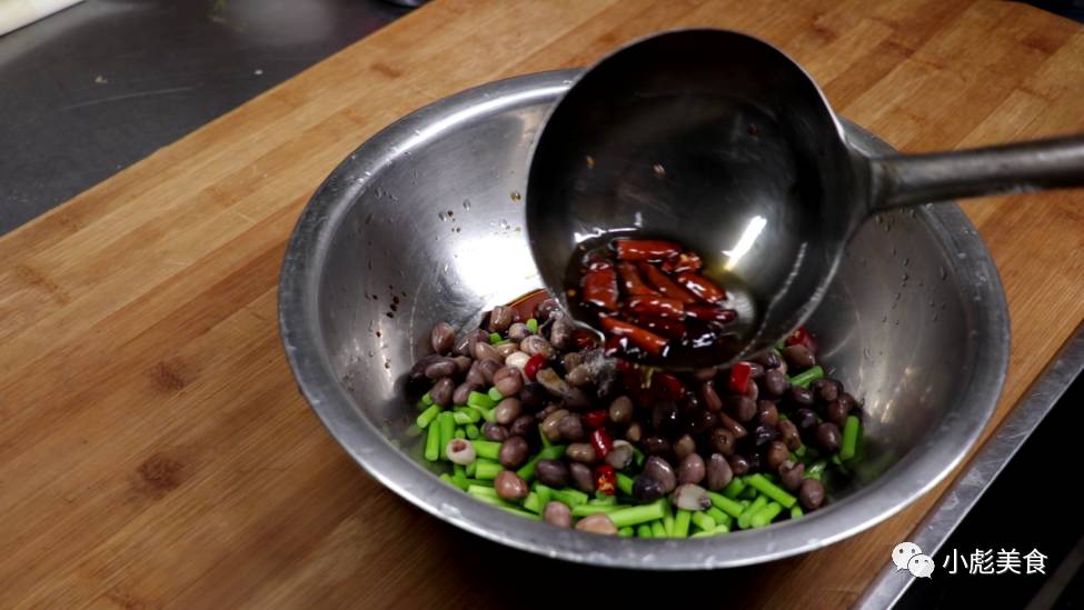 10、再来一勺香醋、一勺味极鲜、半勺盐、炸好的辣椒、再来少许的香油、