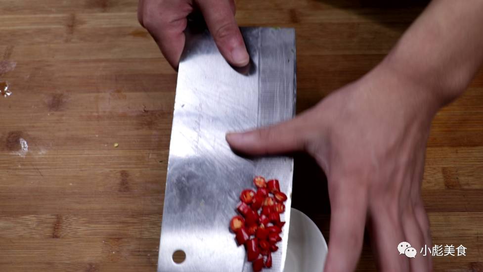 2、切完放入盘子中、葱姜切成片、干辣椒切成段放入碗中。