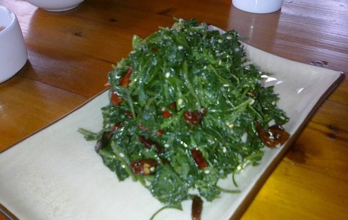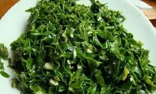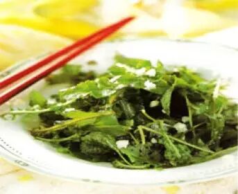 【做法】:把幼嫩的灰灰菜清洗干净,放进沸水中焯一下,拌入葱、姜、蒜、盐、味精、香油即可食用。 灰灰菜幼苗和嫩茎叶可食用,味美、鲜嫩、口感好,营养丰富。具有清热、解毒作用。