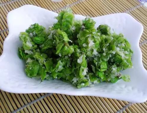 【做法】:1.新鲜的榆树叶洗净控下水分2.放适量的盐搅拌下3.放面粉搅拌到片叶子都沾上干粉4.不要放水 搅拌均匀5.开水下锅 蒸 边蒸边搅拌。出锅后,放些橄榄油、芥末油、酱油、醋和糖调碗蘸汁即食