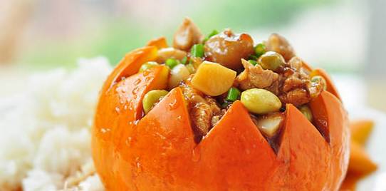 5、大火上汽后转中火蒸约12分钟左右至熟,然后用勺子沿碗壁挖出后摆放盘中,用香菜叶装饰一下。