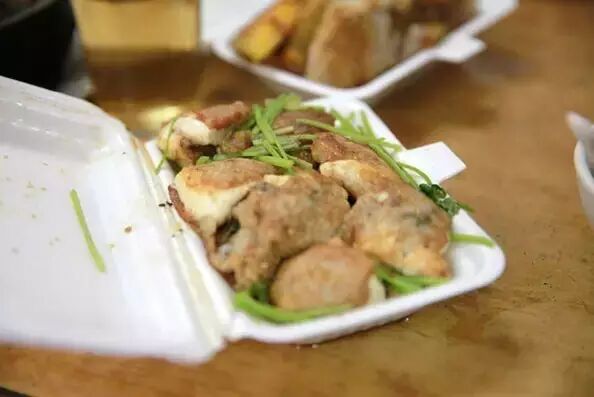豆腐角可是赤坎有名的小吃,豆腐和鱼、虾、肉、香菇等蔬菜一起放在平底锅上煎,鱼肉的油将豆腐煎得金黄色,味道都进去了,然后将各种东西放进豆腐成为馅,卷成三角形,吃起来外脆里酥,十分好吃。