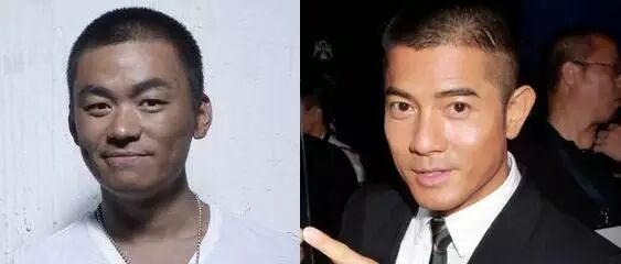 吴镇宇的前额发迹线生得很上,但是鬓角发迹线很完美。所以看起来脸小。