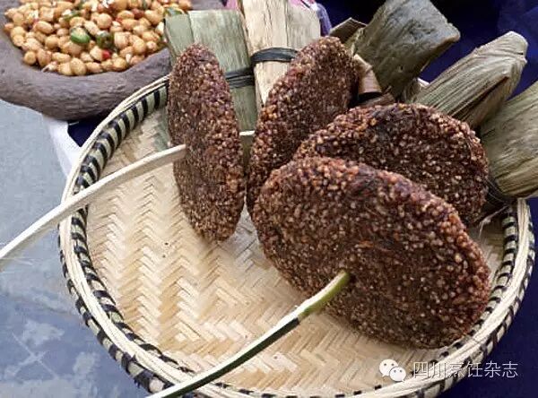 菜粑粑软糯、菜味香,是用燃烧后的某种树枝灰,加水泡至色黄,再取灰水和入糯米面成团,用粽叶包好放在蒸笼蒸好即可。