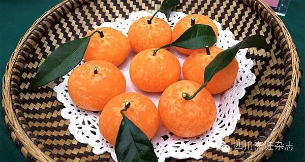 2.锅放油烧热,放入做好的生坯,小火慢慢炸熟后捞出,点缀上橘把和橘叶,摆在盘中即成。