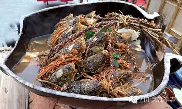 原料:稻田鱼2500克 启蒙酸菜1500克 盐、鸡精、味精、姜蒜各适量菜油1000毫升(约耗200毫升) 稻草500克